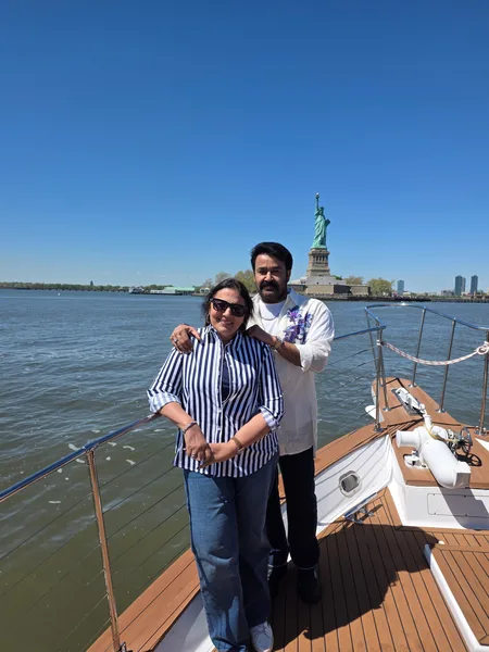 दरअसल, मोहनलाल ने अपनी शादी की सालगिरह पर सोशल मीडिया प्लेटफॉर्म एक्स पर पत्नी सुचित्रा के साथ एक खूबसूरत तस्वीर शेयर की। इस तस्वीर में दोनों न्यूयॉर्क हार्बर स्थित मशहूर स्टैच्यू ऑफ लिबर्टी के पास खड़े नजर आ रहे हैं। तस्वीर में दोनों के चेहरे पर मुस्कान दिखाई दे रही है।