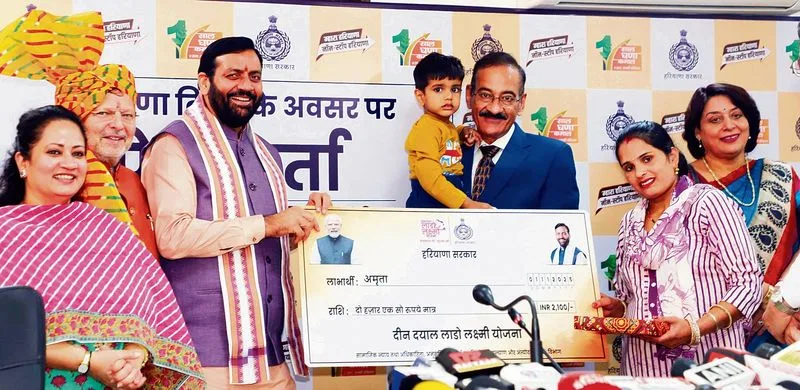 1 नवंबर को हरियाणा दिवस पर, नायब सिंह सैनी सरकार ने दीन दयाल लाडो लक्ष्मी योजना के तहत पात्र महिलाओं को 2,100 रुपये देने का अपना प्रमुख चुनावी वादा पूरा किया। जहां भाजपा ने इस निर्णय को दलितों को सशक्त बनाने की एक और पहल बताया, वहीं विपक्ष, विशेषकर कांग्रेस, इससे उत्साहित नहीं थी। उसने आरोप लगाया कि इस योजना को “काफी कमजोर” कर दिया गया है, क्योंकि सभी महिलाएं इसके अंतर्गत शामिल नहीं हैं।