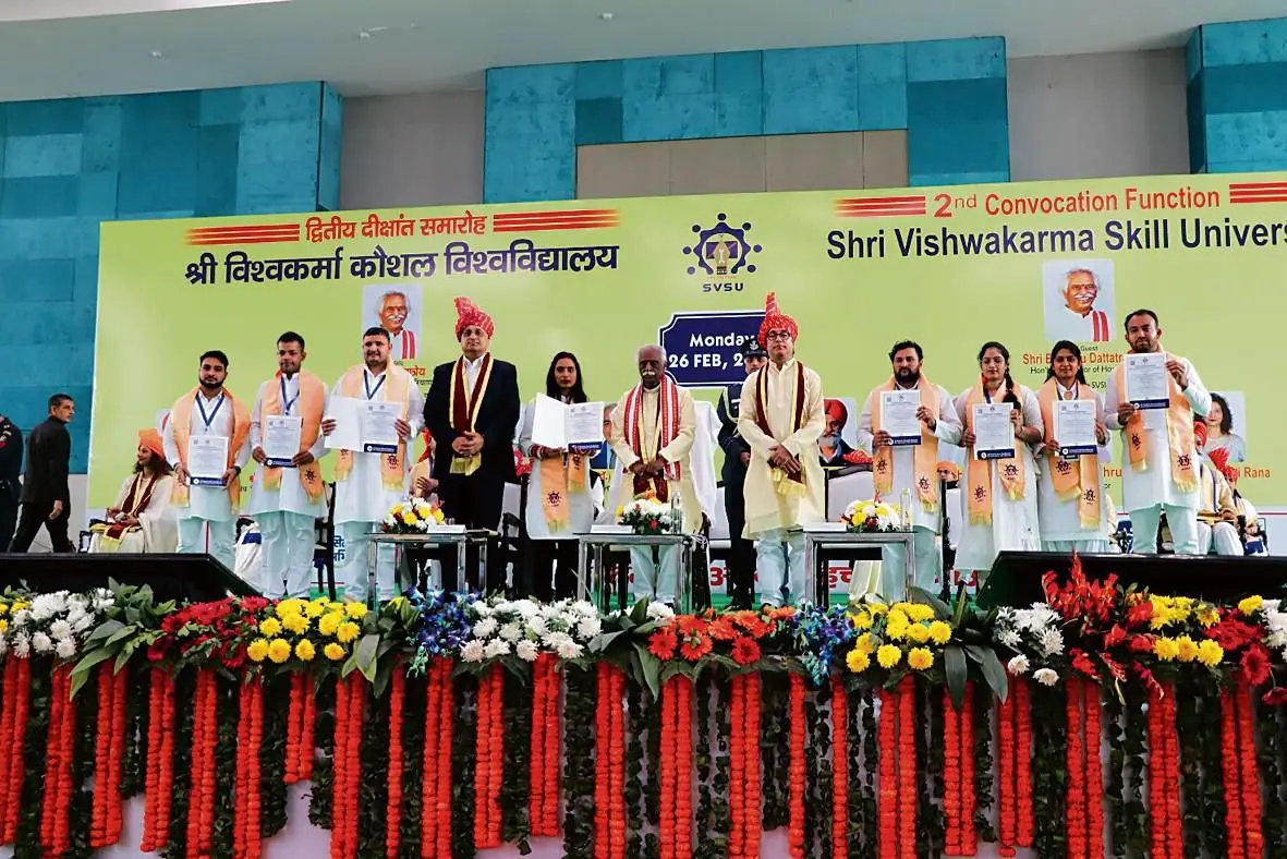 पलवल, 27 फरवरी सोमवार को यहां जिले के दुधोला गांव में श्री विश्वकर्मा कौशल विश्वविद्यालय (एसवीएसयू) के दूसरे दीक्षांत समारोह में 675 छात्रों को डिग्री और डिप्लोमा प्रदान किए गए। इस अवसर पर हरियाणा के राज्यपाल बंडारू दत्तात्रेय मुख्य अतिथि थे।