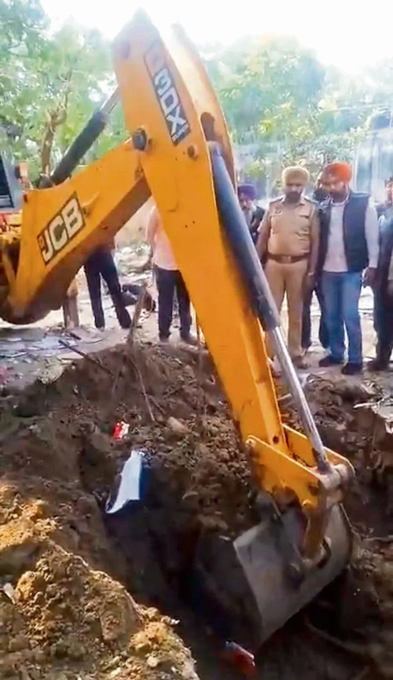 मार्च में सरकारी कार्रवाई के बाद शंभू मोर्चा से ट्रैक्टर-ट्रेलर और अन्य सामान चोरी होने की शिकायत करने वाले प्रदर्शनकारी किसानों के बाद, पुलिस की एक टीम ने बुधवार को नाभा के कार्यकारी अधिकारी (ईओ) गुरचरण सिंह के आधिकारिक आवास पर छापा मारा। अपराध जांच एजेंसी (सीआईए), पटियाला और नाभा पुलिस की संयुक्त टीम ने ईओ के आवास के एक हिस्से की खुदाई के बाद कुछ स्पेयर पार्ट्स बरामद किए।