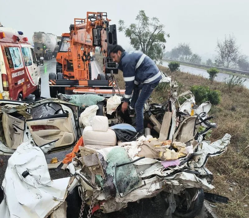 पुलिस मौके पर पहुंची और देखा कि एक स्विफ्ट डी-जायर दो ट्रकों के बीच फंसी हुई है। एक वरिष्ठ पुलिस अधिकारी ने बताया कि कार में तीन लोग फंसे हुए थे, जिन्हें क्रेन और स्थानीय लोगों की मदद से बाहर निकाला गया। दो लोगों की मौके पर ही मौत हो गई। मृतकों की पहचान आगरा के बसाई निवासी टैक्सी चालक नफीस और 29 वर्षीय पोलिश नागरिक माइकल माजिक के रूप में हुई है। महिला का दिल्ली के एक अस्पताल में इलाज चल रहा है और उसकी हालत स्थिर है।