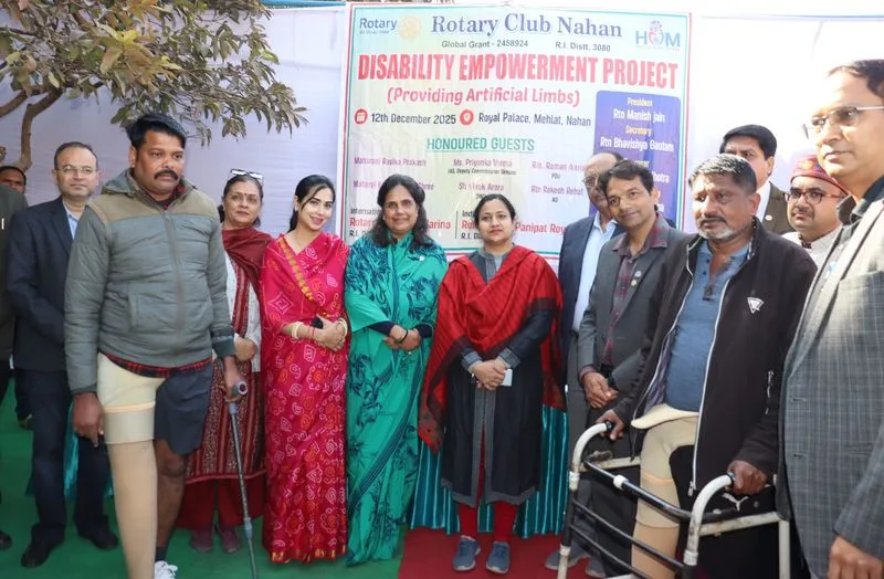 आज नाहन में रोटरी क्लब द्वारा आयोजित एक कार्यक्रम के दौरान सिरमौर की उपायुक्त प्रियंका वर्मा ने 15 दिव्यांगजनों को कृत्रिम अंग सौंपे। यह कार्यक्रम दिव्यांगजनों के उत्थान और उन्हें गरिमापूर्ण एवं आत्मनिर्भर जीवन जीने में सक्षम बनाने की सामूहिक प्रतिबद्धता को दर्शाता है।