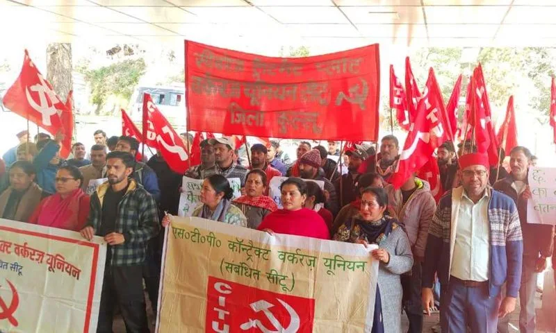 राज्य भर के एसटीपी संविदा श्रमिक संघों ने सेंटर ऑफ इंडियन ट्रेड यूनियन (सीआईटीयू) की राज्य समिति के आह्वान पर आज यहां जल शक्ति विभाग के मुख्य अभियंता के कार्यालय में विरोध प्रदर्शन किया और न्यूनतम मजदूरी से अधिक वेतन के भुगतान की मांग की।
