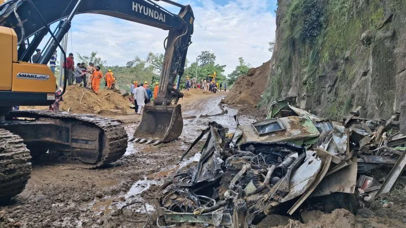 कल हुए भीषण भूस्खलन में दबी दुर्भाग्यपूर्ण बस के मलबे से 15 शव बरामद किए गए हैं। इस हादसे में केवल दो बच्चे – एक लड़का और एक लड़की – ही जीवित बचे हैं।