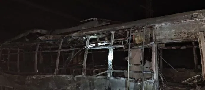 एक प्रत्यक्षदर्शी ने बताया कि टायर फटने से ईंधन टैंक में आग लग गई, जिससे एक जोरदार धमाका हुआ और देखते ही देखते पूरी बस आग की लपटों में घिर गई। कुछ यात्री मदद के लिए चिल्लाते हुए भागने में कामयाब रहे। शुरू में ऐसा माना जा रहा था कि सभी लोग सुरक्षित बच गए हैं, लेकिन आग बुझाने के बाद बस के अंदर दो जले हुए शव मिले।