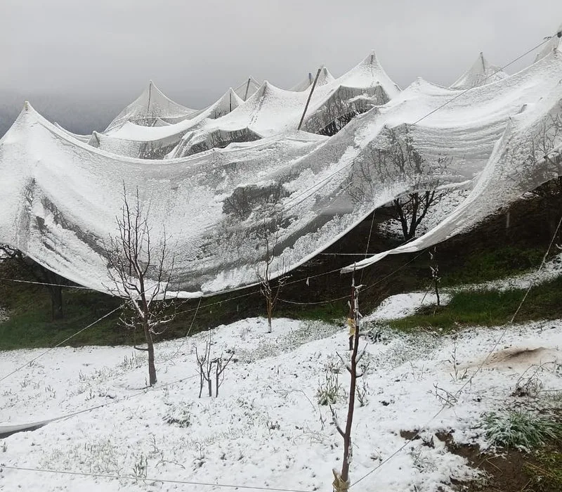 ओलावृष्टि का सबसे गंभीर प्रभाव उन बागों में देखा गया है जहां पेड़ों को ओलावृष्टि से बचाने वाले जालों से ढका गया है। बाघी के एक बाग मालिक ने बताया, “जालों पर लगभग तीन-चार इंच बर्फ जमा हो गई है। अत्यधिक वजन के कारण कई बागों में बांस के सहारे टूट गए हैं और पेड़ क्षतिग्रस्त हो गए हैं।”