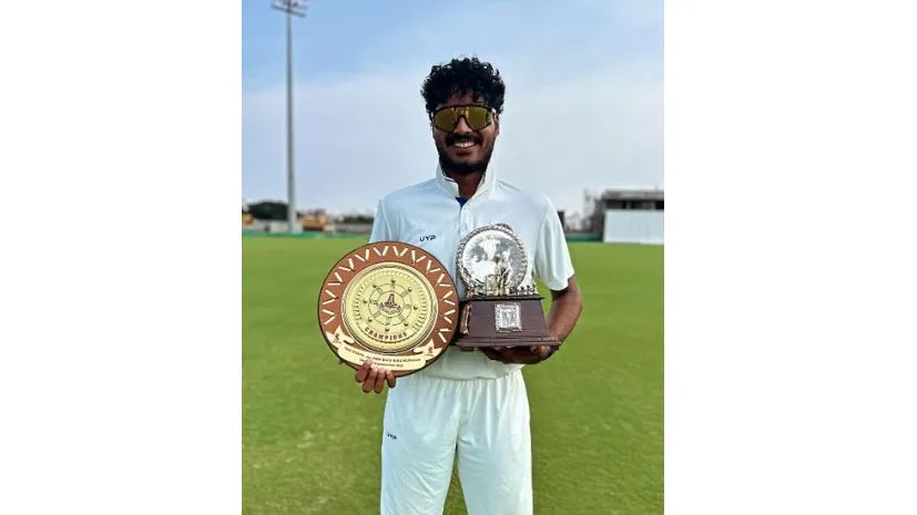 इस दौरान कप्तान तिलक वर्मा 34 के साथ दूसरे विकेट के लिए 87, प्रग्नय रेड्डी 22 के साथ चौथे विकेट के लिए 76 और प्रणव वर्मा 7 के साथ पांचवें विकेट के लिए 43 रन की साझेदारी की। चामा मिलींद अमन के साथ 6 रन बनाकर नाबाद रहे।